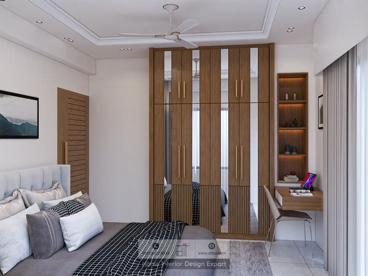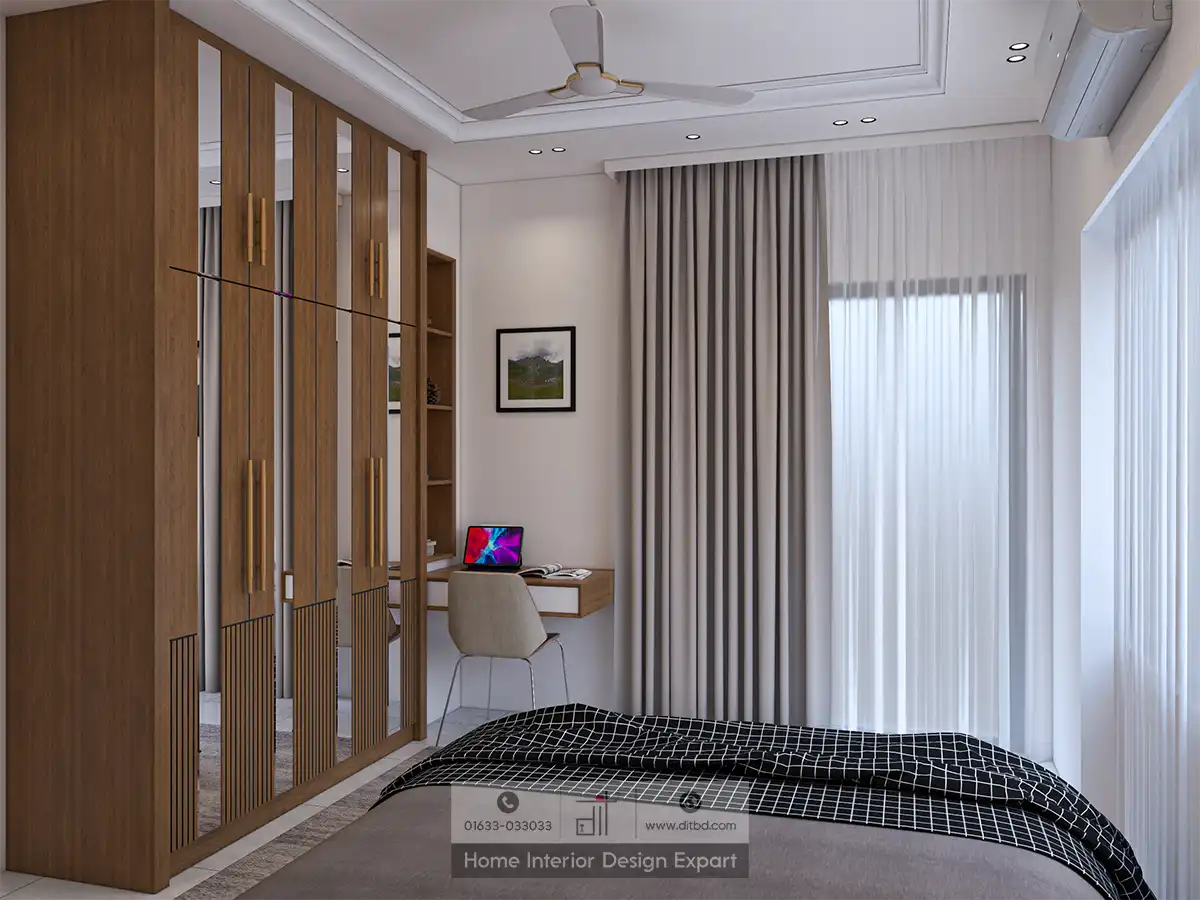 It is not always that guests come over to your place. But when they do you need to make sure they feel welcomed and cared about. So, their stay should be cozy and private. What if you do not have enough space for their stay? Do not worry! We can utilize minimal space for greater comfort. And our minimal guest bedroom interior is ideal for guests due to its thoughtful blend of simplicity and comfort.
