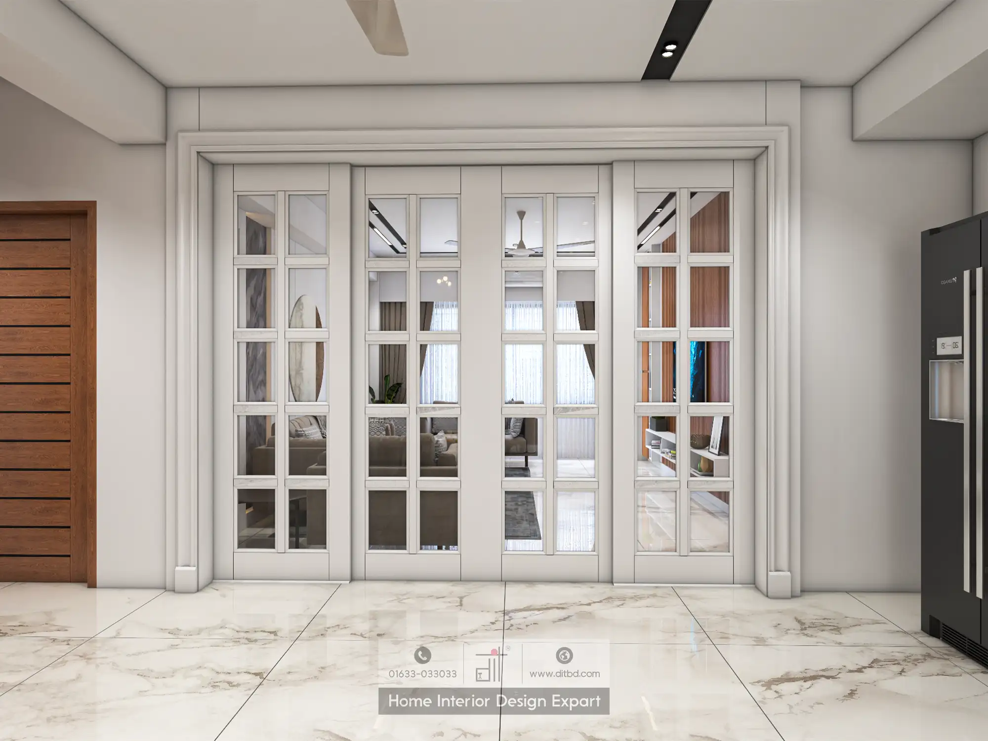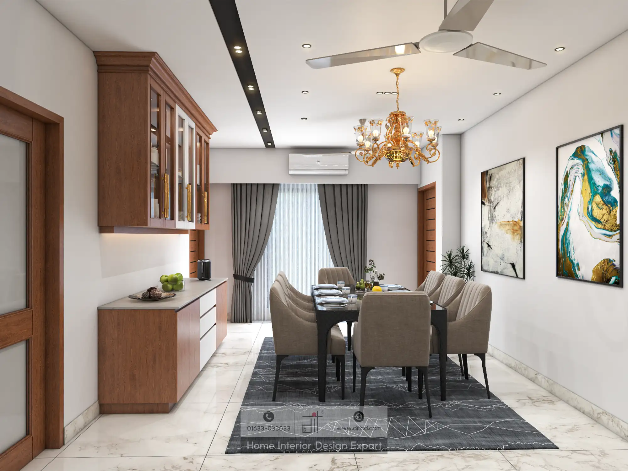 At DIT Studio, we use a neutral color palette with shades of white, gray, and beige to create a calm and cohesive look, allowing furniture and decor to stand out. Choose functional furniture that is both stylish and versatile, such as modular sofas, multi-purpose tables, and built-in storage solutions. Incorporate plants and greenery to add life and freshness, improving air quality and creating a more inviting atmosphere.