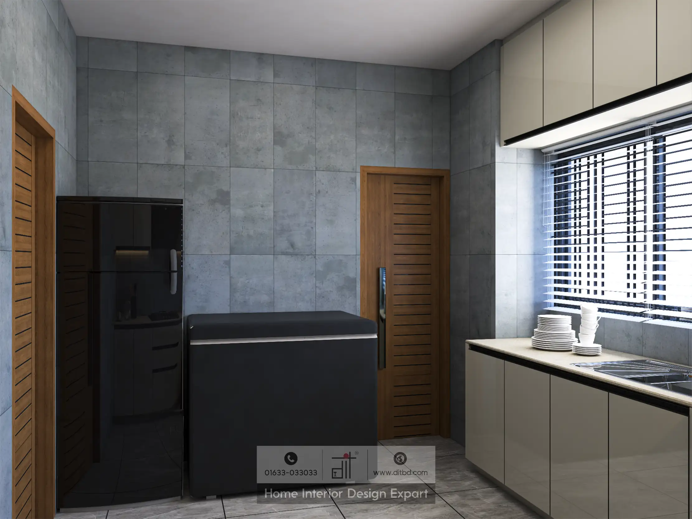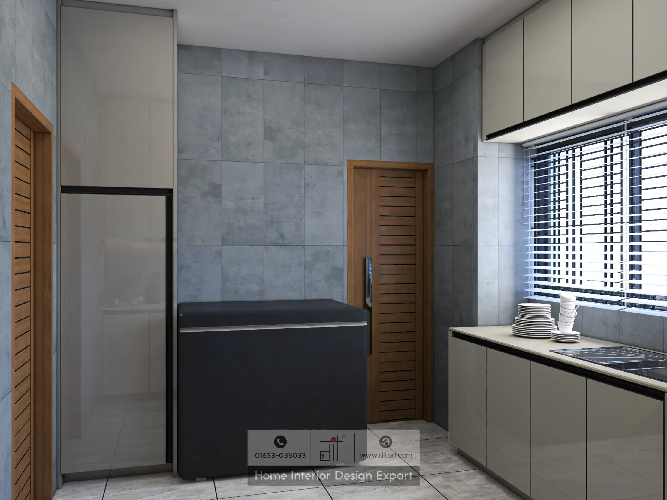 Your modern kitchen is not just a place to cook; it’s a space where you can create memories, share meals, and enjoy the simple pleasures of life. This kitchen features sleek, minimalist cabinetry with a light grey finish and integrated handles, creating a clean and contemporary look. The countertops are a light color, complementing the cabinetry and enhancing the overall brightness of the space. The backsplash and walls are tiled with a subtle grey pattern, adding texture and depth to the design.